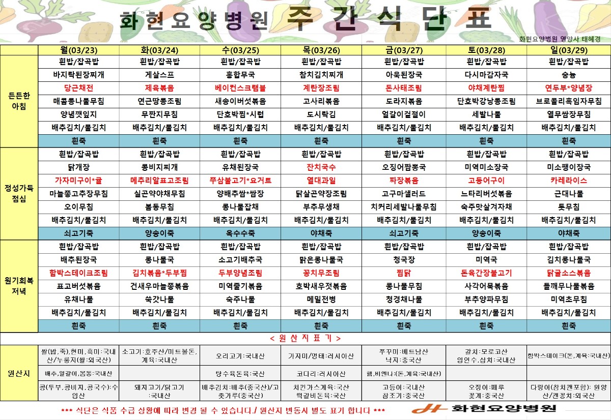 2026년 3월 네째주 식단표